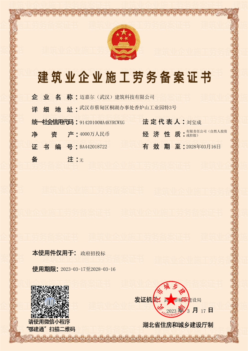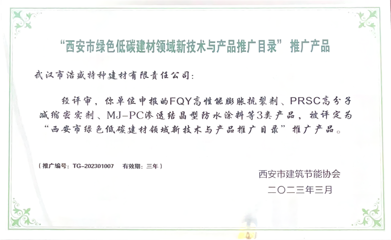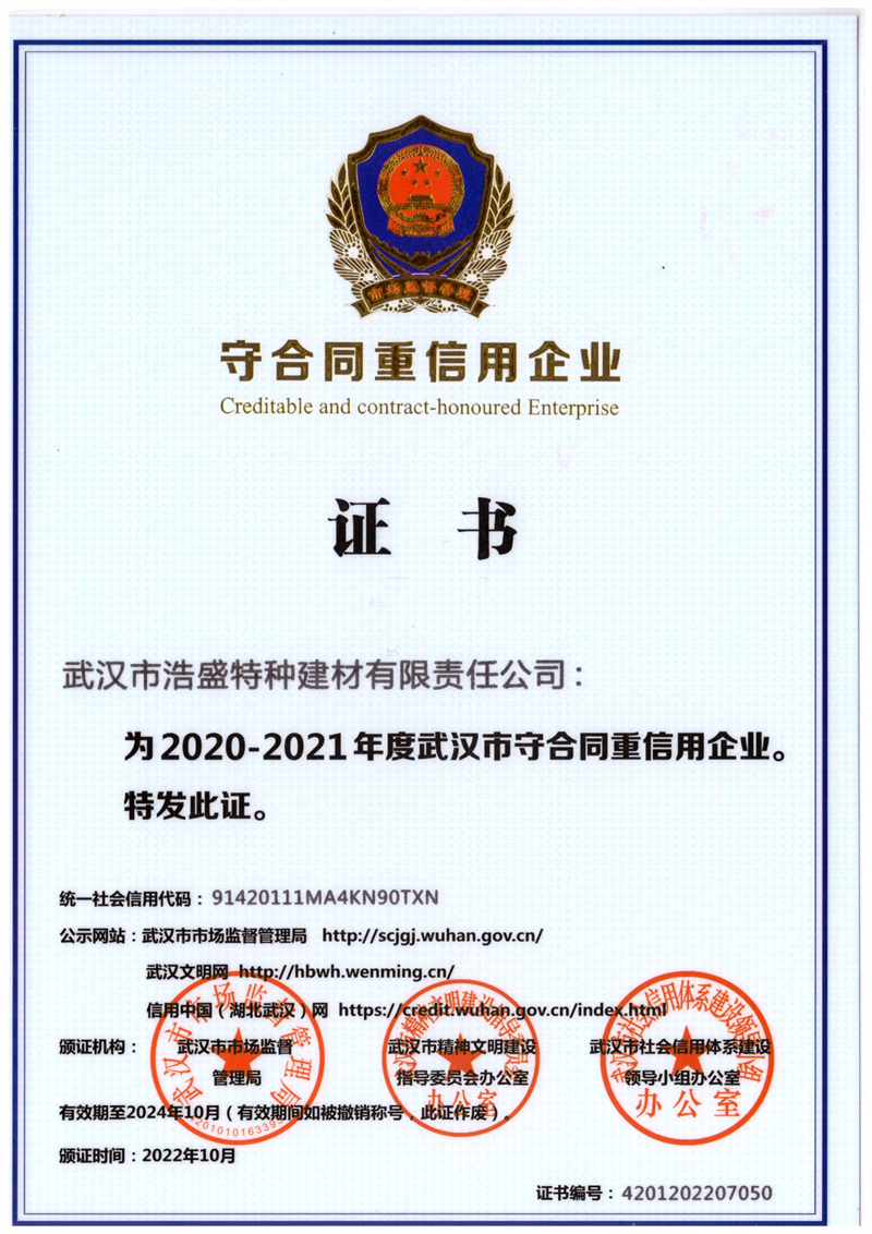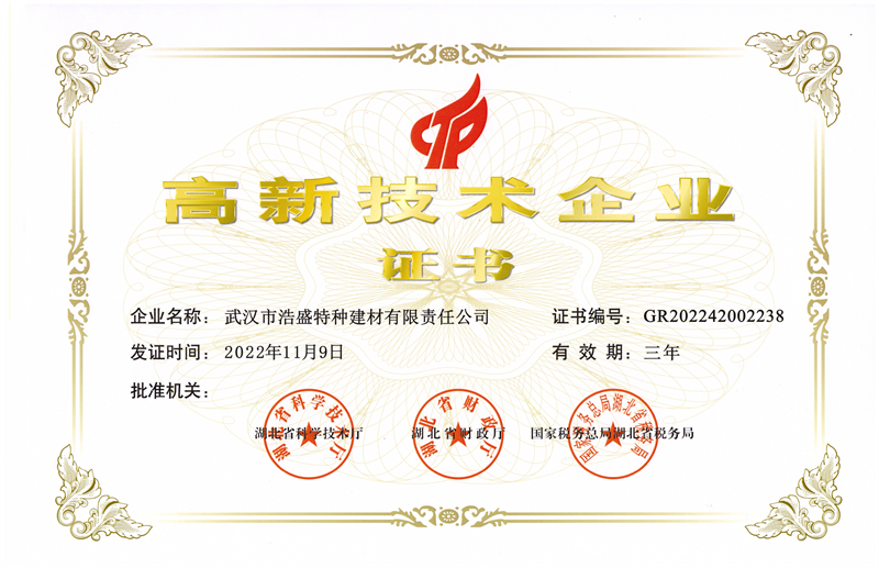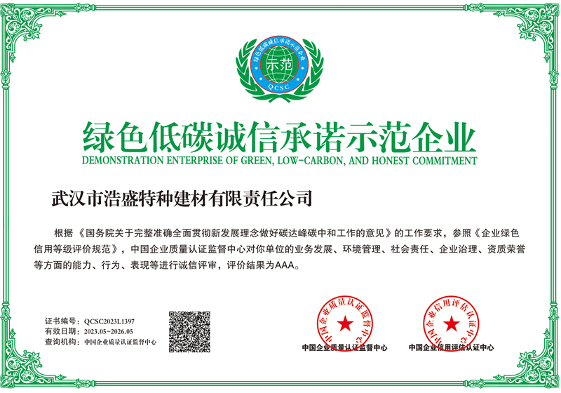 自成立以来,我司已荣获省级专精特新企业称号,连续5年荣获高新技术企业,3次荣获瞪羚企业认证。并获得国家及相关行业协会的认可,获得守合同重信用企业、ISO体系认证、安全生产许可证、3A信用企业证书、绿色低碳诚信示范企业、绿色低碳建材领域新技术与产品推广证书等。